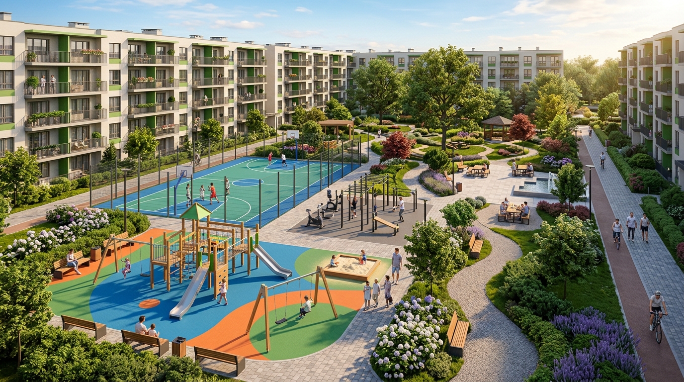 Благоустройство двора жилого комплекса давно вышло за рамки стандартной схемы с одной детской площадкой и парковкой. Современные дворы рассматриваются как многофункциональные пространства для жизни, работы и отдыха жителей всех возрастов. Успешный проект объединяет детские игровые площадки, спортивные зоны, места спокойного отдыха, зелёные насаждения и инфраструктуру для животных