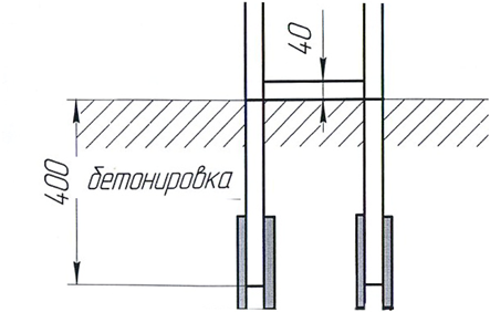- Конструкция устанавливаются с помощью специальных закладных под трубу (из арматуры длиной не менее 200 мм, диаметром не менее 8 мм) методом бетонирования.