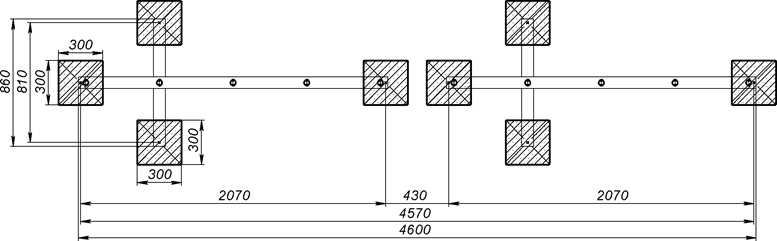 - Крестообразные основания длиной 2070 мм (2 шт.) выполнены из стального листа с толщиной стенки не менее 4 мм. Конструкция устанавливается с помощью металлических штырей под пятаки (8 шт.) методом бетонирования.