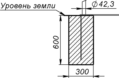 - На основания установлены трубы (по 5 шт.) диаметром не менее 42,3 мм с толщиной стенки 3,2 мм, в которые вставляются столбики из стальных труб диаметром не менее 33,5 мм с толщиной стенки не менее 2,8 мм, длиной 1000 мм.