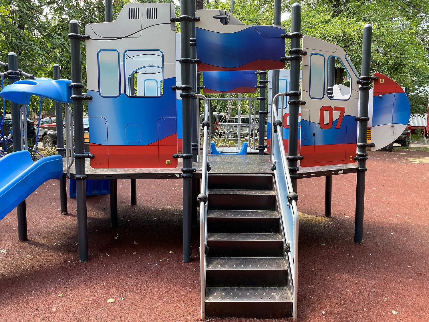 - Разноуровневые площадки основания (11 шт.) выполнены из стального листа толщиной не менее 1,5 мм с противоскользящей просечкой, изготовленной методом вырубки, с подшивкой на втором этаже из ламинированной фанеры толщиной не менее 12 мм. Площадки имеют дополнительные ребра жесткости из профильной трубы в виде специальной конструкции, проваренной Х-образно по периметру.
