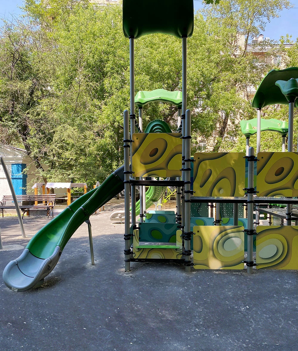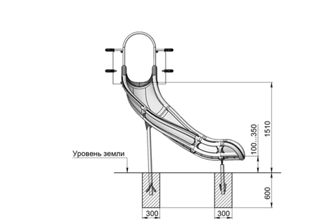 - Пластиковые элементы открытых спусков, барабан, крыша “Козырёк” (6 шт.), козырек, лаз “Скалолаз”, лаз “Тоннель” изготовлены из линейного полиэтилена низкого давления методом ротоформования. У начала прямого спуска установлена перекладина, за которую ребенок может держаться, когда садится на спуск. Перекладина закрыта декоративным пластиковым козырьком для обеспечения безопасности. Спуск фиксируется на уровне земли с помощью закладной под трубу методом бетонирования. Элементы наборного пластикового спуска должны быть скреплены между собой алюминиевыми соединительными вставками и закреплены болтами. Составной спуск также оборудованы перекладиной, побуждающей ребенка садится на спуске для обеспечения безопасности. Спуск фиксируется в середине и на уровне земли с помощью закладной под трубу методом бетонирования.