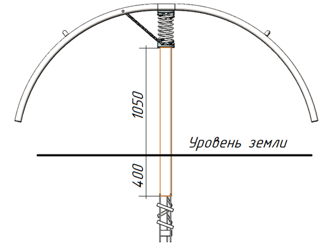 - Опорные стойки качелей (2 шт.) представляют собой цельнометаллическую конструкцию из стальных труб диаметром не менее 102 мм, с толщиной стенки не менее 3,5 мм. Между стойками выполнены перемычки из арматуры длиной не менее 200 мм, диаметром не менее 8 мм для надежности конструкции. Монтаж конструкции выполняется методом бетонирования.