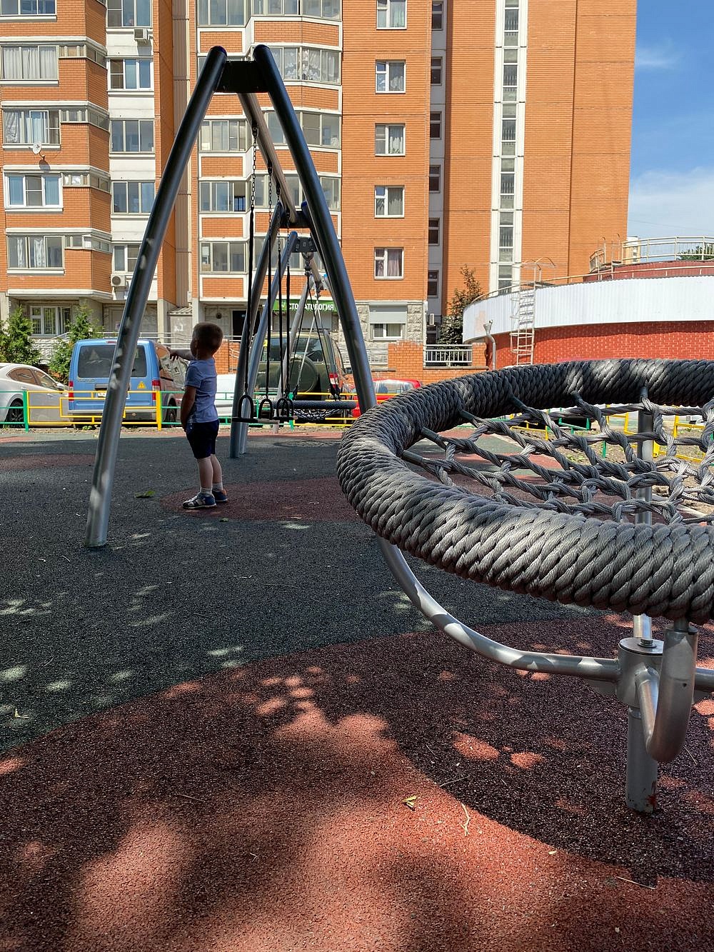 - Резиновые сиденья для качелей без спинки (2 шт.) крепятся к балке на подвесах из нержавеющей стали с помощью цепи «curve» длиной 1350 мм (страховочная цепь+термоусадка).