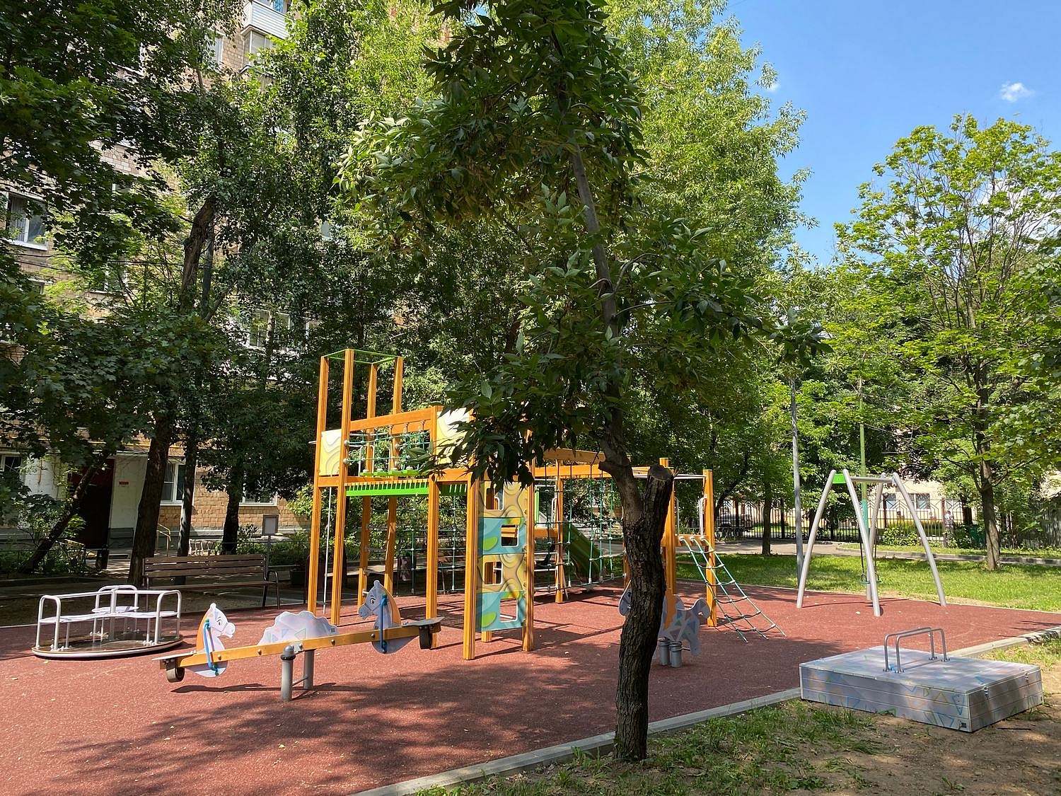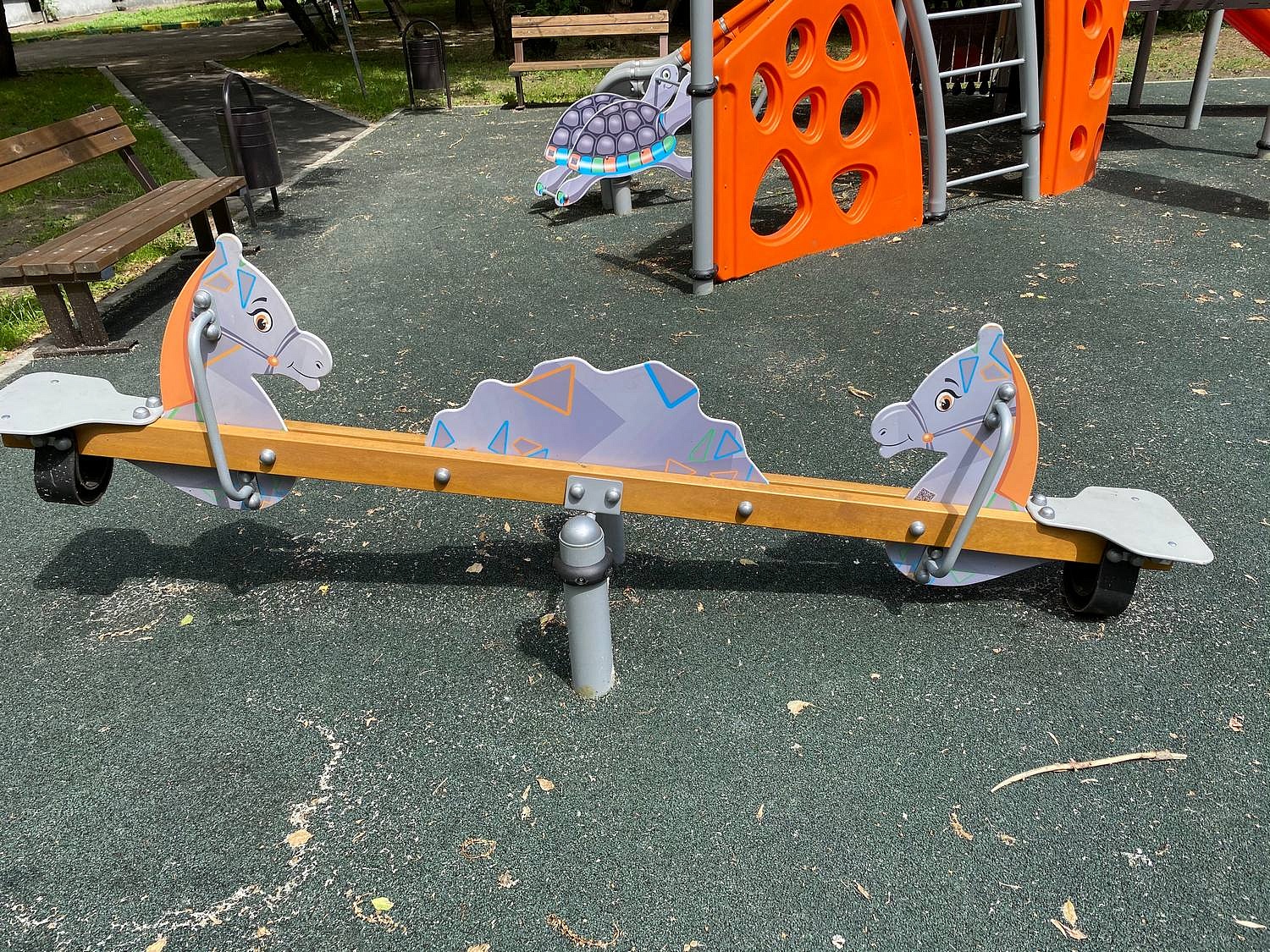 - Сиденья 292х350мм (2 шт.), панель куст, панель лошадка (2 шт.) изготовлены из влагостойкой ламинированной фанеры FOF толщиной не менее 12 мм. Кромки фанеры закруглены и шлифованы.