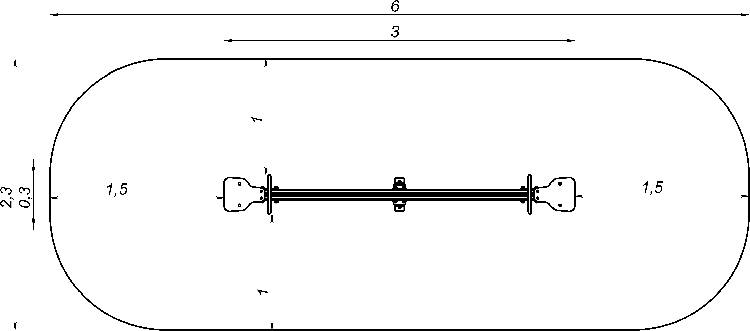 - Балка балансира выполнена из бруса 92х92 (либо 70х140) мм длиной 3000 мм и оснащена с обеих сторон ручками в виде круглых поручней. Ручка-кольцо (2 шт.) изготавливается из металлической трубы диаметром не менее 26,8 мм с толщиной стенки не менее 2,8 мм.