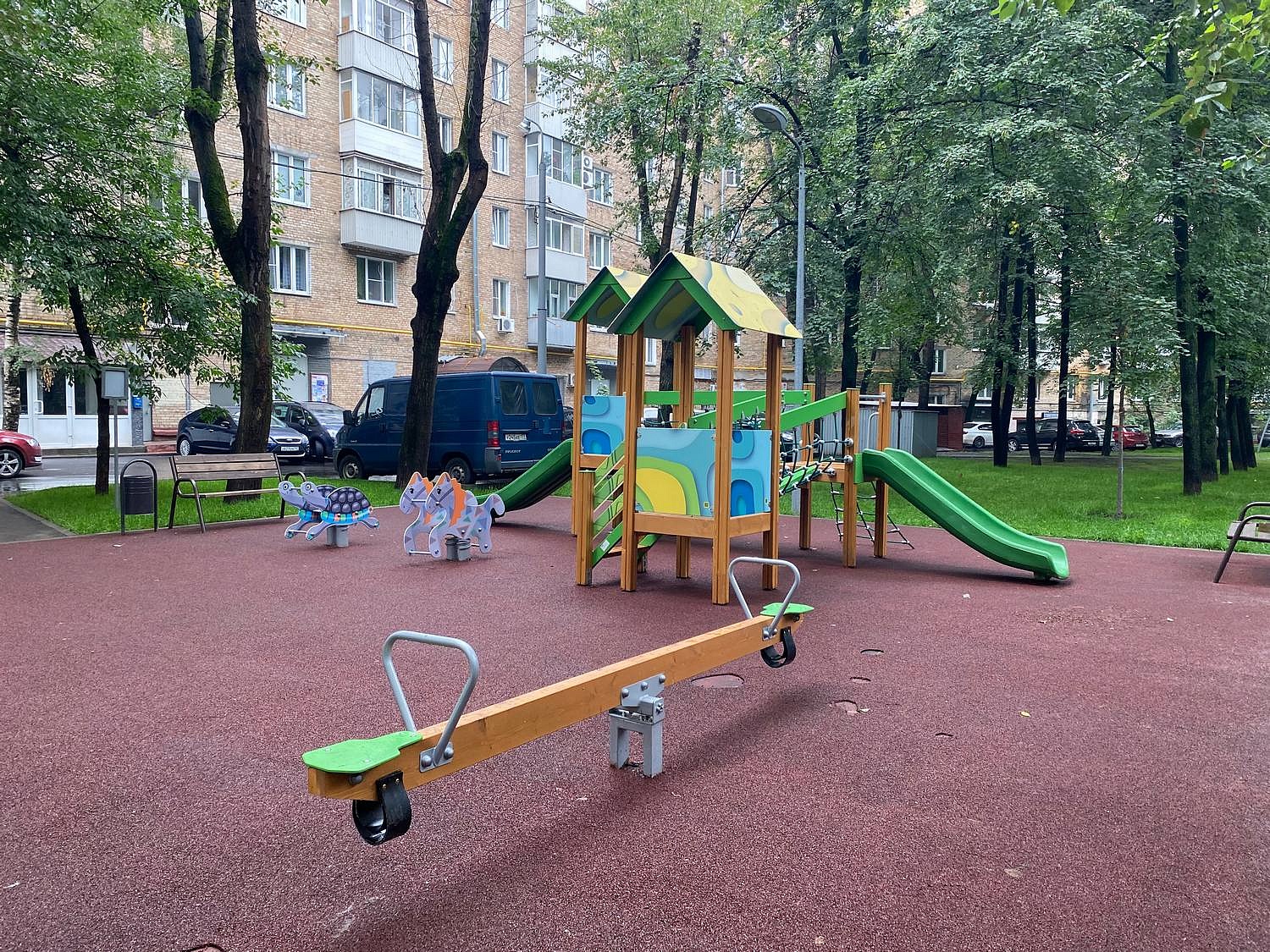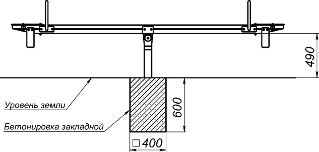 - Опорная стойка качелей выполнена из стальной профильной трубы сечением 80х40 мм, с толщиной стенки не менее 2,0 мм. Монтаж конструкции выполняется методом бетонирования.