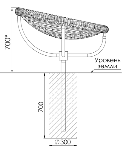 - Стойка карусели выполнена из стальной трубы диаметром не менее 48 мм, с толщиной стенки не менее 3,5 мм. Стойка устанавливается с помощью специальной закладной под трубу (из арматуры длиной не менее 200 мм, диаметром не менее 8 мм) методом бетонирования.