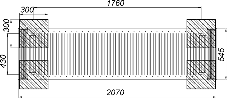 - Сиденье выполнено из досок-брусков размером 40х40 мм длиной 530 мм (47 шт.).